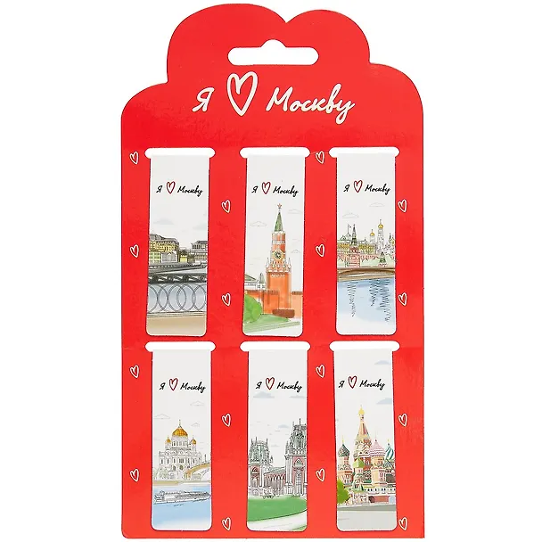 Очень красивые и эстетичные магнитные закладки с пейзажами Москвы. Качество этих великолепных пейзажей идеальное, со временем не выцветает, что является огромным плюсом. Само качество магнитных закладок не отстаёт от качества печати пейзажей Москвы на них. Магнитные закладки очень хорошо держатся на странице. Сами закладки выглядят эстетично, что хочется смотреть на них снова и снова.