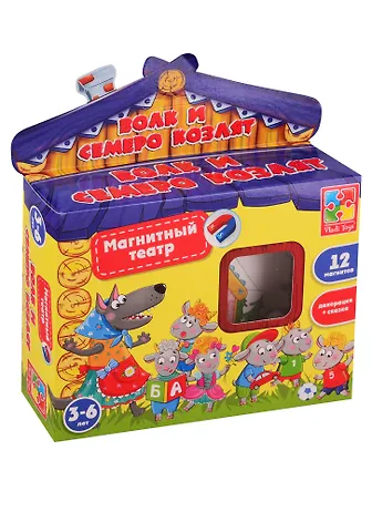 Создавайте настоящие театральные постановки у себя дома! Поспешите играть вместе с любимыми героями! Магнитный театр «Волк и семеро козлят» содержит специальную декорацию, которая перенесет вас в увлекательный мир сказки. Объемные магниты легко крепятся к холодильнику или к специальной магнитной доске. Игра содержит вкладыш с оригинальной сказкой, но вовсе не обязательно читать только её! Детская фантазия без границ! Создавайте вместе с малышом новые истории с уже знакомыми персонажами. Играйте с магнитами и тренируйте логику, речь и мелкую моторику.