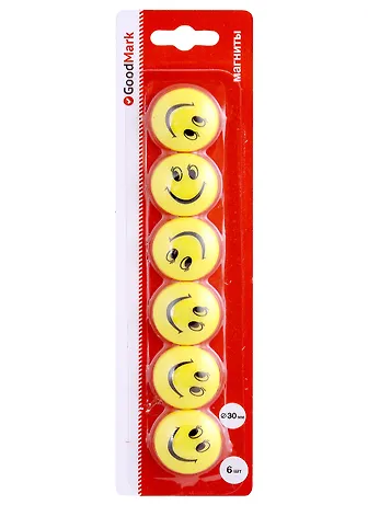 Магниты 6 штук 30мм "Смайлики", блистер, GoodMark