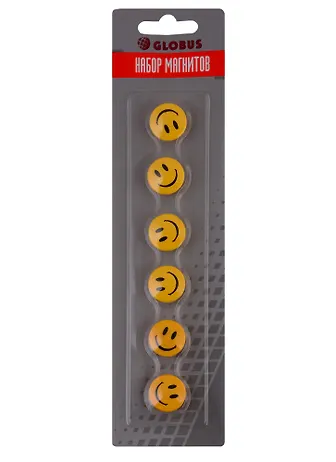 Покупала данные магниты для магнитно-маркерной доски, чтобы крепить туда небольшие заметки. Магниты сделаны из качественного и прочного пластика. Магнитная часть примагничивается крепко. Цвет магнитов ярко-желтый, смайлики хорошо пропечатаны. Размер у магнитиков небольшой, но они идеально подойдут как для доски, так и для холодильника.