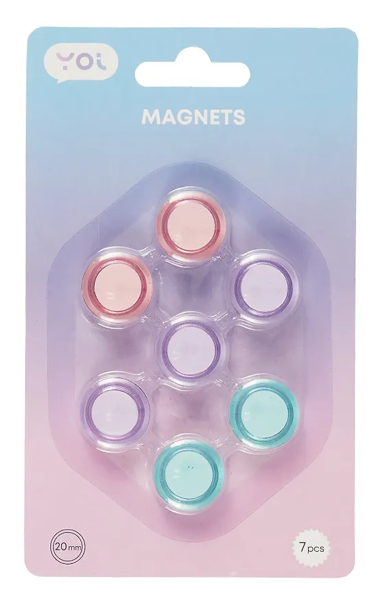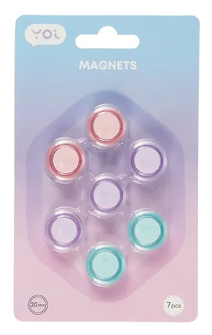 Эти магнитики для моей белой маркерной доски - то, что надо. Цветовая гамма идеальная, много места они не съедают. Магнит надежно сидит в пластиковом корпусе и не отклеивается, сам по себе достаточно сильные (но не неодимовый, слава буддам) и не падает так просто. Купила 2 таких набора и не жалею. Цена тоже вполне приемлемая.