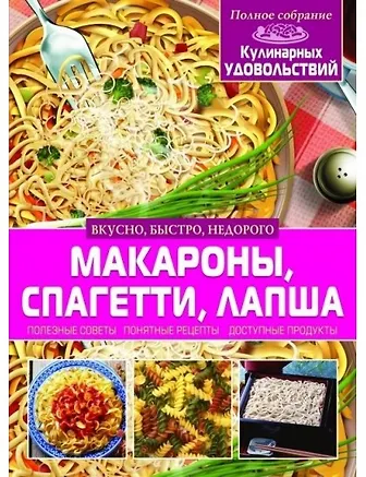 Эта книга — настоящий подарок для всех, кто любит вкусно поесть! Благодаря ей вы узнаете, какие замечательные блюда можно приготовить из макаронных изделий. Эти блюда сделают разнообразным ваше повседневное меню. Готовьте с удовольствием по рецептам лучши