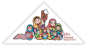 Марка Декоративно-прикладное искусство России. Матрёшка.