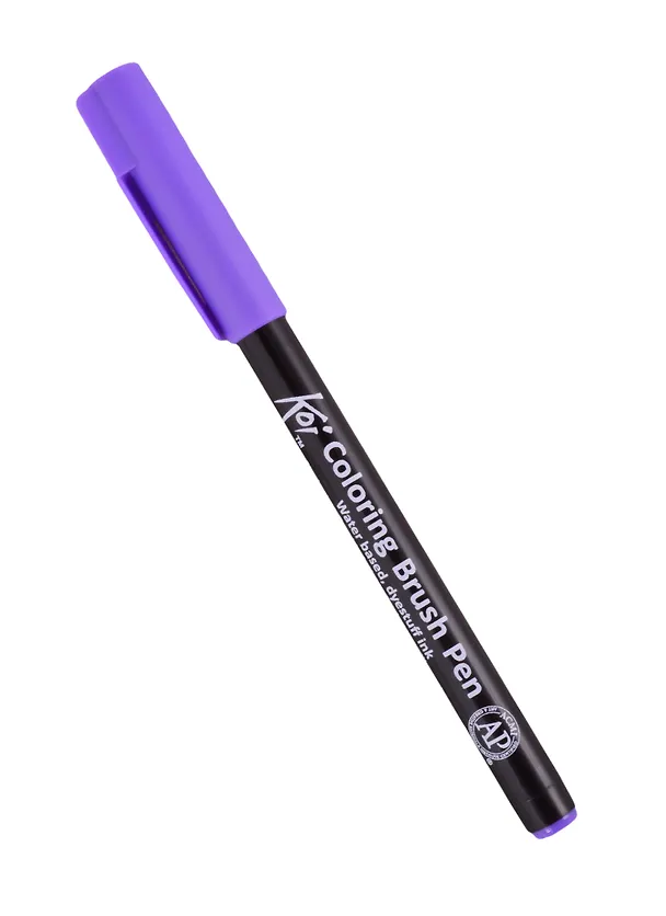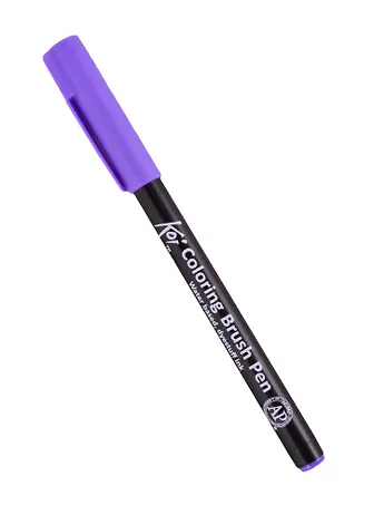 Японский акварельный фиолетовый маркер. Легко наносится и разводится водой. Можно добиться нежных фиолетовых оттенков и насыщенных тёмных. Маркер наносится равномерно, не плешивит. Удобная нейлоновая кисть позволяет делать линии разной толщины. Не имеет никакого запаха, не портит тонкую бумагу, в отличие от маркеров на спиртовой основе. Также маркер не протекает