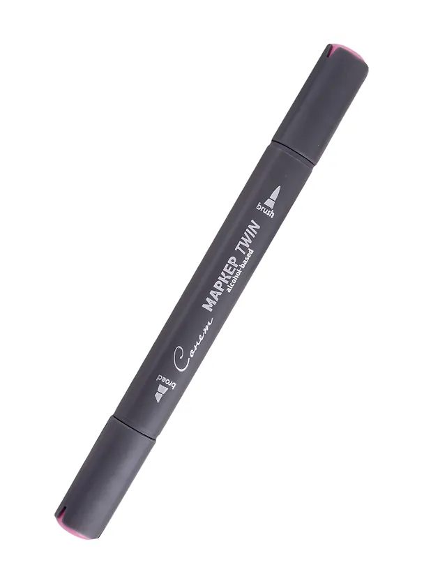 Очень красивый розовый цвет. Средний по тону. Я его дополнила более темным и более светлым. Для рисования сладостей идеален. Наконечник Долото стандартное как у всех. Кисть более упругая чем у скетчмаркер, например.
