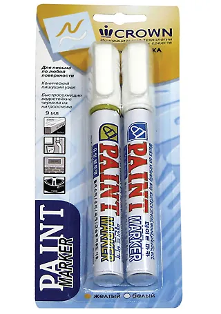 Маркер-краска, 2штуки (белый, желтый), 3мм, блистер, подвес, CROWN