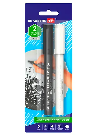 Хороший насыщенный цвет, два акриловых маркера в упаковке: черный и белый. Стержень оптимального размера - нетолстый и нетонкий.