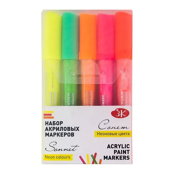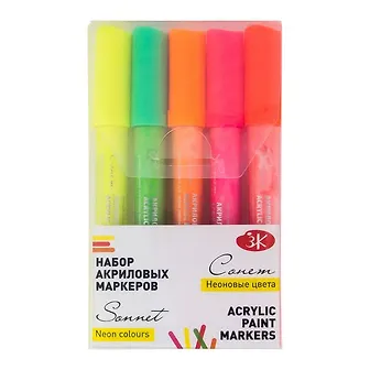 Маркеры акриловые 05цв "Сонет" 2мм, неоновые цвета, Сонет