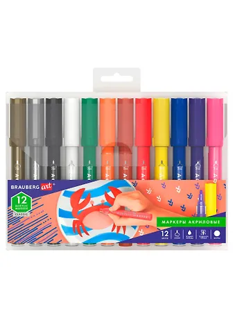 Маркеры акриловые 12цв для рисования и хобби, 2,0мм, BRAUBERG ART CLASSIC