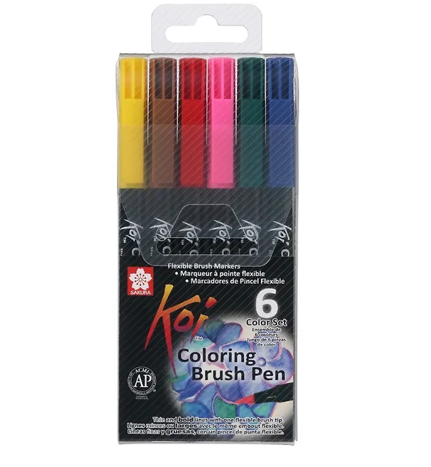 Набор маркеров акварельных Koi Basic кисточка 6 цветов в блистере