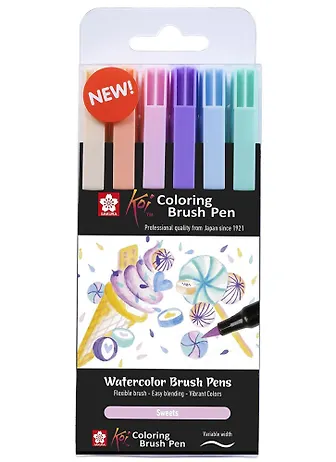 Маркеры акварельные 06цв "Koi" кисточка, сладости
