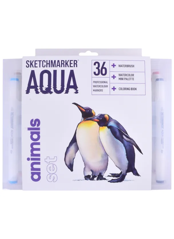 Маркеры акварельные 36цв Aqua Pro Animals, к/к, Sketchmarker