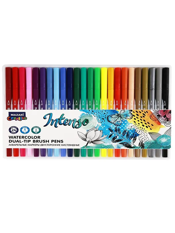 Маркеры акварельные 24цв "INTENSO" двусторонние, наконечник кисть и перо, пласт.уп.