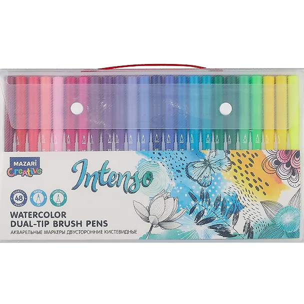 Маркеры акварельные 48цв "INTENSO" двусторонние, наконечник кисть и перо, пласт.уп.