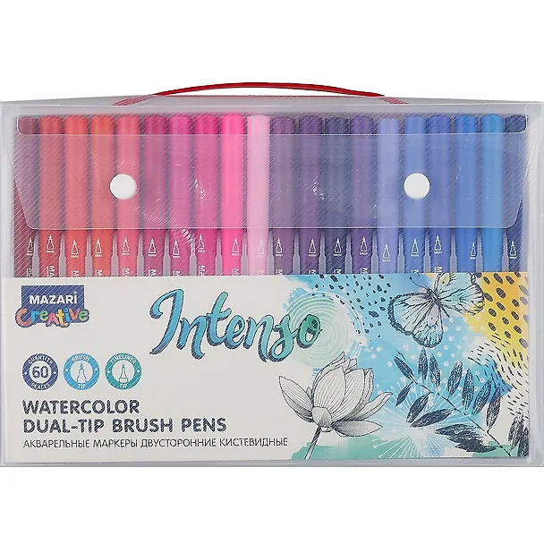 Маркеры акваркльные INTENSO, 60цв, двусторнние, наконечник кисть и перо, пластик.упаковка