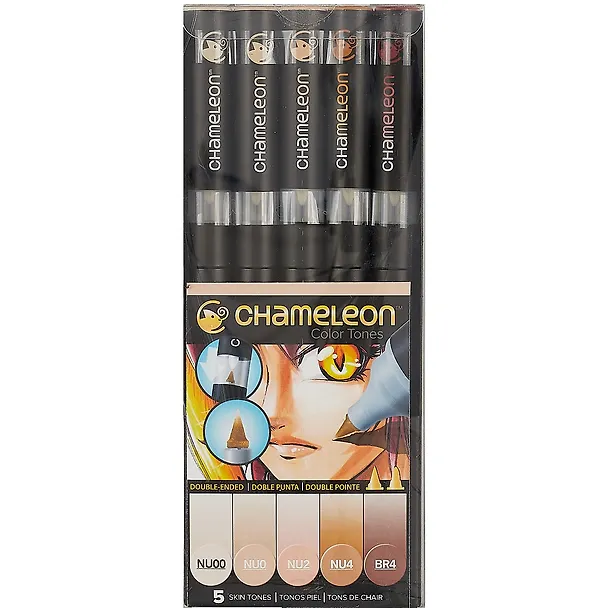 Предлагаем вашему вниманию набор маркеров "Chameleon Skin Tones" (Телесные тона). Двухсторонние маркеры с инновационной системой смешивания цветов, позволяющей создавать плавные переходы и градиенты с использованием всего одного маркера. Набор включает 5 маркеров. Каждый маркер имеет два пера - перо-кисть и пулевидное. Профессиональные спиртовые чернила имеют возможность перезаправки, без запаха. Подходят для всех типов скетчей, графики, манги.