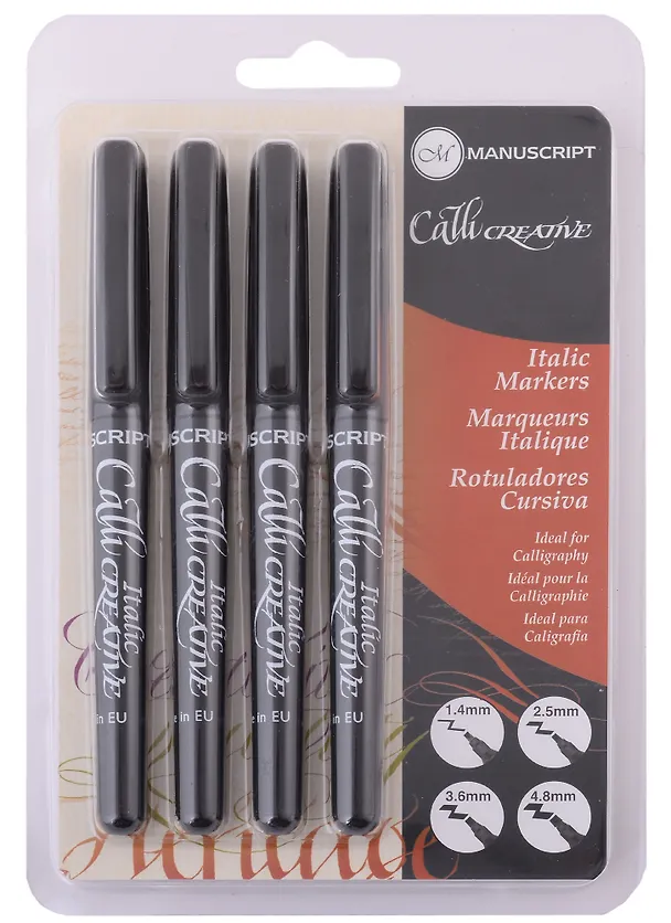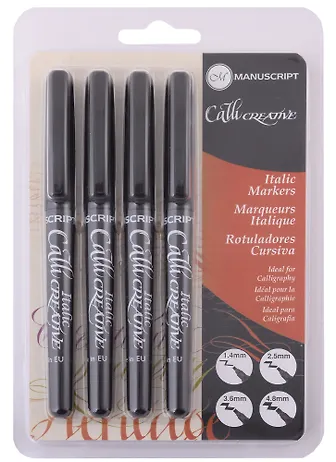 Маркеры черные 04шт "Italic" F/M/B/EB, для каллиграфии, блистер, Manuscript