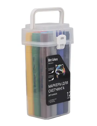 Набор маркеров для скетчинга Art idea на спиртовой основе — отличный выбор для иллюстраторов, студентов художественных вузов и тех, кто просто любит рисовать. 12 сочных цветов помогают быстро создавать яркие зарисовки, выделять тени и свет, прорабатывать детали. Двусторонние маркеры с пулевидным и скошенным наконечниками подойдут и для тонких линий, и для заливки крупных участков. Удобный пластиковый бокс упорядочит маркеры на столе и защитит их в дороге.