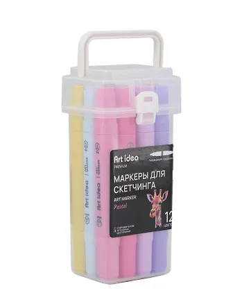 Набор маркеров для скетчинга Art idea — это 12 нежных пастельных оттенков для иллюстраций, леттеринга, оформления ежедневников и конспектов. Двусторонние стержни с пулевидным и скошенным наконечниками позволяют прорабатывать и тонкие линии, и широкие заливки. Спиртовая основа даёт ровный, насыщенный цвет без полос и просвечиваний, отлично подходит для многослойных переходов и мягких градиентов.