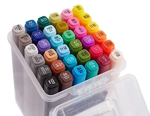 Маркеры удобно хранить и переносить в компактном пластиковом боксе: всё на своём месте, палитра всегда под рукой, ничего не потеряется. Такой набор отлично подойдёт и новичку, и опытному художнику.