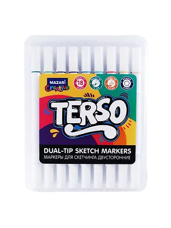 Маркеры для скетчинга 18цв "TERSO" двусторонние, пулевидный/клиновидный наконечники 1-3мм, пласт. уп.
