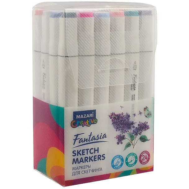 Маркеры для скетчинга 24цв "Fantasia" Flowers colors на спиртовой основе, пулевидный/клиновидный наконечники 2,5-6,2мм, Mazari
