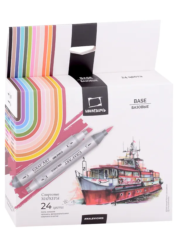 Маркеры для скетчинга 24цв "GrafArt Brush" базовый, Малевичъ