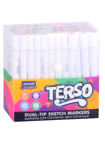 Маркеры для скетчинга 48цв "TERSO" двусторонние, пулевидный/клиновидный наконечники 1-3мм, тканевый футляр