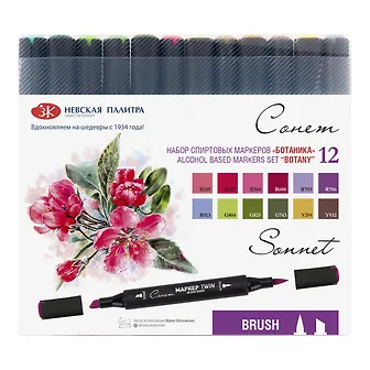 Маркеры художественные 12цв "Сонет"Twin Brush "Ботаника" спиртовые, Сонет