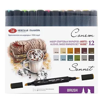 Маркеры художественные 12цв "Сонет"Twin Brush "Хюгге", спиртовые, Сонет