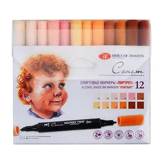 Маркеры художественные 12цв "Сонет"Twin "Портрет", спиртовые, Сонет