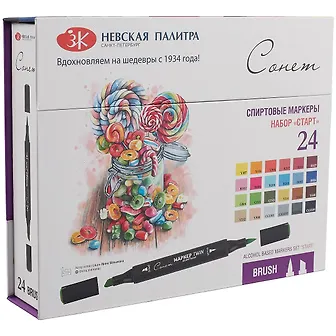 Маркеры художественные 24цв "Сонет"Twin Brush "Старт" спиртовые, Сонет