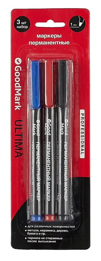 Маркеры перманентные GoodMark, черный, синий, красный 1 мм
