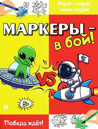 Как занять ребёнка в очереди в поликлинике или долгой поездке? Многоразовая игра на ламинированных страницах «Маркеры — в бой!» — это отличное решение. Весёлые задания расположены так, чтобы было удобно играть вдвоём. Рисуйте водными маркерами, которые легко стереть, и играйте снова и снова!