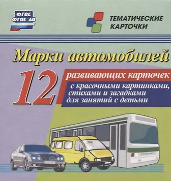 Марки автомобилей. 12 развивающих карточек с красочными картинками, стихами и загадками для занятий с детьми