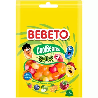 Мармелад BEBETO, COOL BEANS SOUR MIX со вкусом яблока, апельсина, клубники, малины и черники, 60г