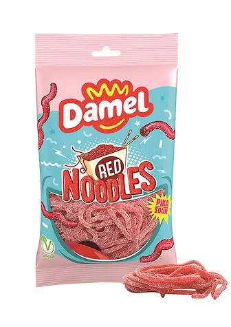 Класный мармелад с клубничным вкусом в сахарно кисленькой посыпке. Мармелада в пачке много, мне хватает на несколько раз. Такую пачку хватит на компанию если предварительно мармеладные спагети разрезать. Мне мармелад понравился, у него приятный, нехимозный вкус в необычной форме лапши.