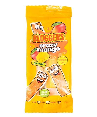 Мармелад жевательный BLOGGERS Крейзи манго со вкусом манго (ремешки), 75г