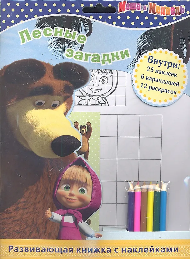 Маша и Медведь. Лесные загадки. Развивающая книжка с наклейками и карандашами
