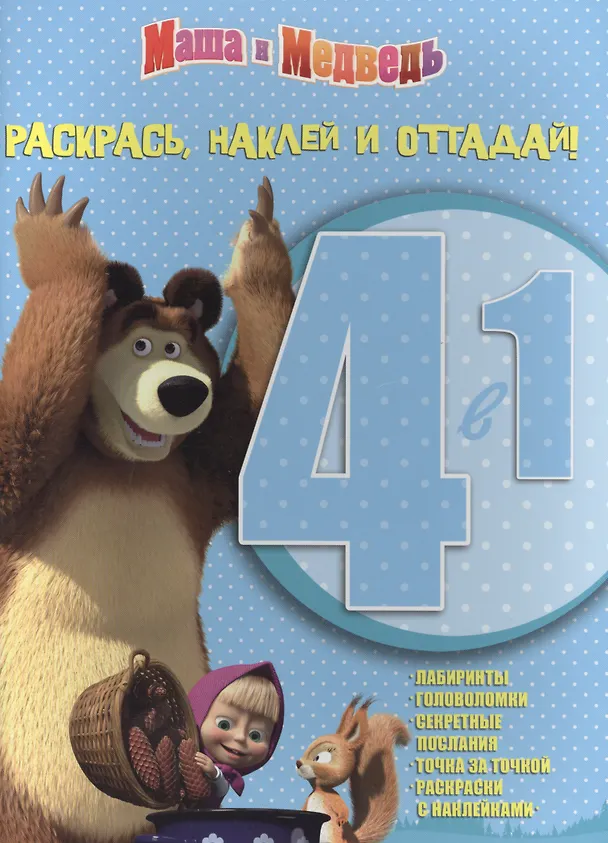 Маша и Медведь. РНО 4-1 № 1404. Раскрась, наклей и отгадай! 4 в 1.
