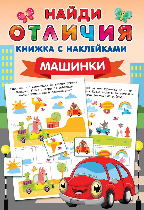 Замечательная книжка «Машинки» порадует ребёнка и принесёт пользу, ведь поиск отличий — это одновременно и весёлая игра, и эффективная тренировка внимания, логики, зрительной памяти. На первый взгляд машинки на картинках могут показаться одинаковыми, но на самом деле это не так. Чтобы найти все отличия, нужно присмотреться, внимательно изучить мелкие детали рисунка. Малыш с удовольствием дополнит странички стикерами, чтобы картинки стали одинаковыми, потренируется собирать пазлы-наклейки и своими руками создавать коллажи.