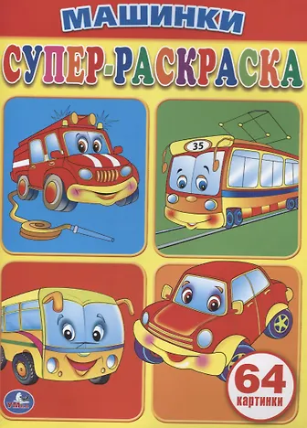 Машинки. Супер-раскраска. (простая раскраска для маленьких, 64 картинки)