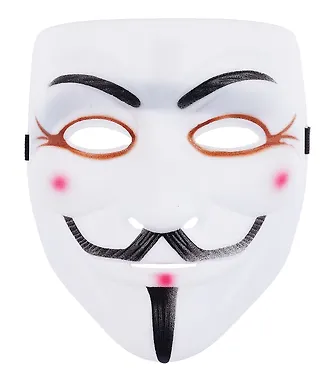 Карнавальная маска Анонимуса из пластика подойдёт для Хэллоуина, косплея, фотосессий и школьных мероприятий. Она легко надевается, надёжно держится на лице и помогает завершить образ без лишних усилий и затрат.