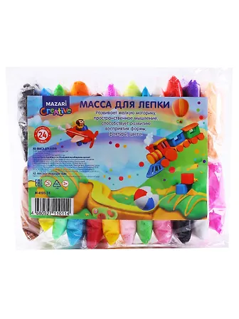Mасса для лепки Mazari Creative, 24 цвета по 10 г. (+пластиковые стеки 3 шт.) (3+)