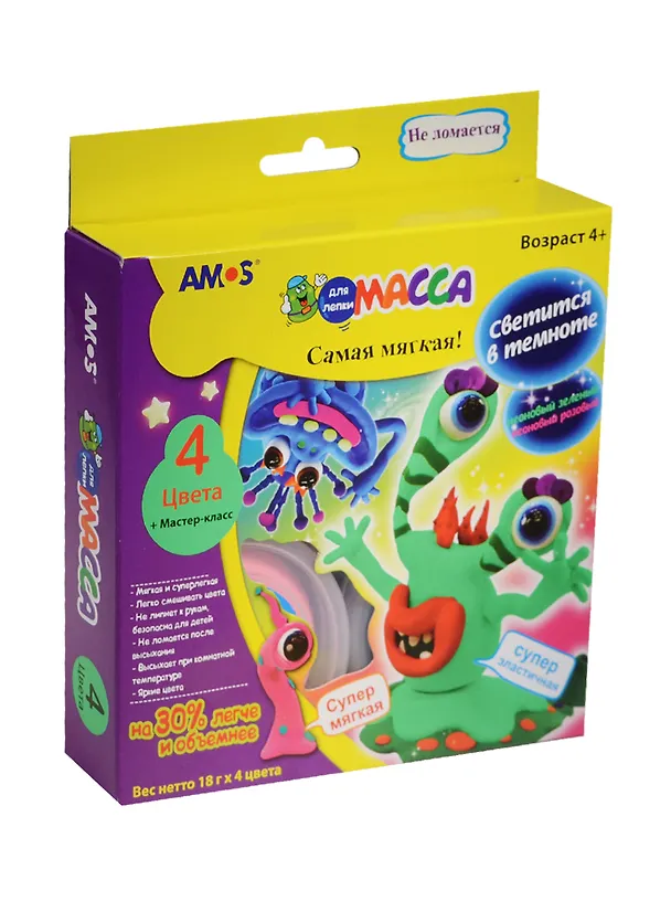Масса НЕОНОВАЯ - мягкая и суперлегкая -легко смешивать цвета -не липнет к рукам, безопасна для детей -не ломается после высыхания -высыхает при комнатной температуре -яркие цвета Идеально подходит для лепки игрушек, аксессуаров, прыгунов и других шедевров детского творчества. Можно менять форму изделия, смочив его водой, пока оно не полностью высохло