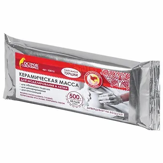 Меняет цвет после высыхания с белой на серую. Очень пластичная, нужно лишь смочить слегка поверхность, можно вылепить вообще все что хочешь.
