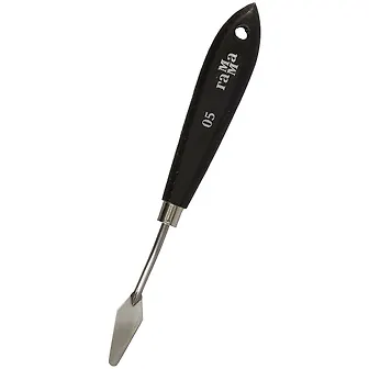 Паяный мастихин из нержавеющей стали с удобной плоской ручкой из натурального бука. Сварное соединение ручки и лезвия дает больший угол наклона мастихина к холсту, снижая вероятность случайного касания и смазывания краски. Форма лезвия — ромб.