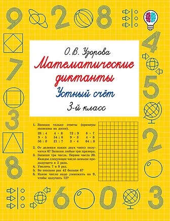 В пособии "Математические диктанты. Устный счёт. 3-й класс" представлен материал, направленный на формирование и автоматизацию навыков устного счёта по всем базовым темам школьной программы по математике. 200 заданий расположены от простых к сложным: таблица умножения, внетабличное умножение и деление в пределах 100, деление с остатком, устные вычисления в пределах 1 000. Эффективная методика Ольги Узоровой — самого известного в России учителя младших классов.