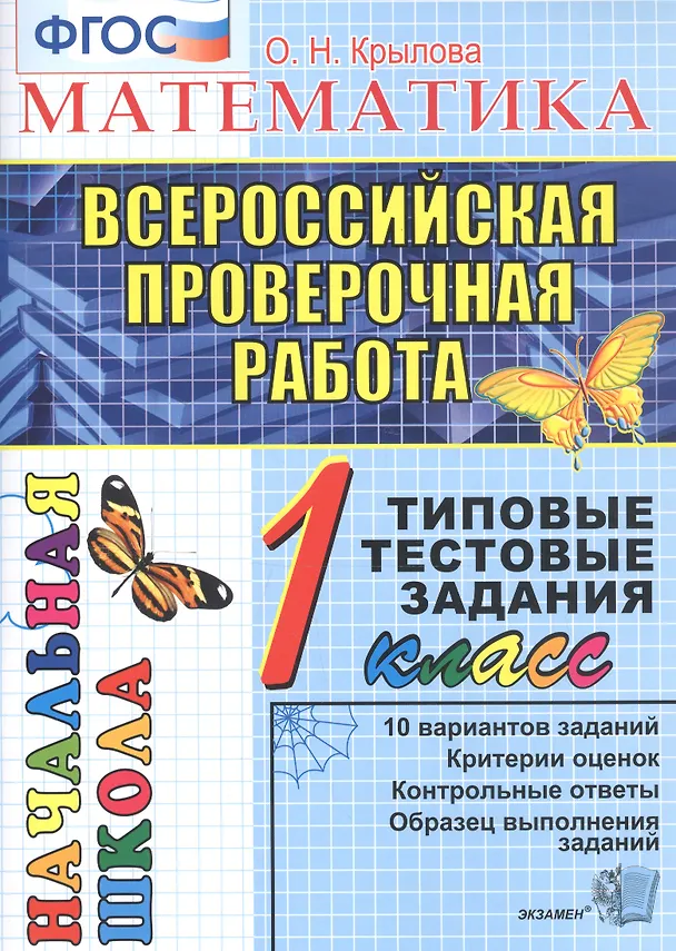 Данное пособие полностью соответствует федеральному государственному образовательному стандарту (второго поколения) для начальной школы. Книга содержит 10 вариантов типовых тестовых заданий Всероссийской проверочной работы за курс 1-го класса. Назначение пособия - отработка практических навыков учащихся по математике при подготовке к Всероссийской проверочной работе. Ответы к заданиям всех вариантов являются материалами для учителя, а потому даны в середине пособия и могут быть легко изъяты, что повышает объективность оценки знаний учащихся. Сборник предназначен для учащихся 1-х классов начальной школы, учителей и методистов, использующих типовые тестовые задания для подготовки к Всероссийск