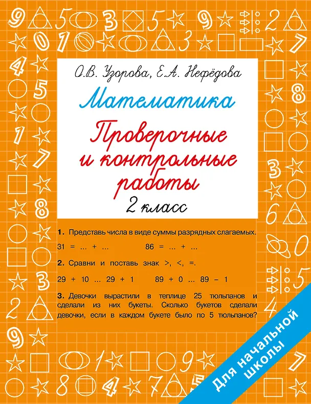 В пособии представлены различные проверочные и контрольные работы по всем темам программы по математике для 2 класса. В одной книге собраны контрольные работы, математические диктанты, тесты, геометрические задания, задания на логику и смекалку. Проверочные работы помогут ребёнку отработать все необходимые навыки, предусмотренные программой по математике для начальной школы, и справиться с проверочной работой любого уровня сложности. Пособие можно использовать на уроке в школе и для самостоятельных занятий дома. О. В. Узорова и Е.А Нефёдова — известные педагоги-практики, авторы самых издаваемых учебников и учебных пособий в России. Основанные на авторской методике, доказавшей свою эффект